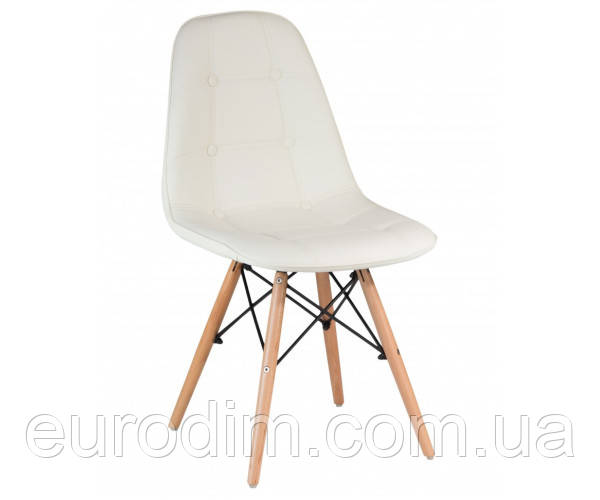 Стілець м'який, матеріал екошкіра, ніжки дерев'яні, дерево натуральний бук, світлий відтінок, покриті прозорим акриловим лаком, розмір стільця: ширина сидіння 46 см, глибина сидіння 42 см, висота стільця до спинки 82 см, висота від підлоги до сидіння 43 см. Кількість у коробці 4 од.