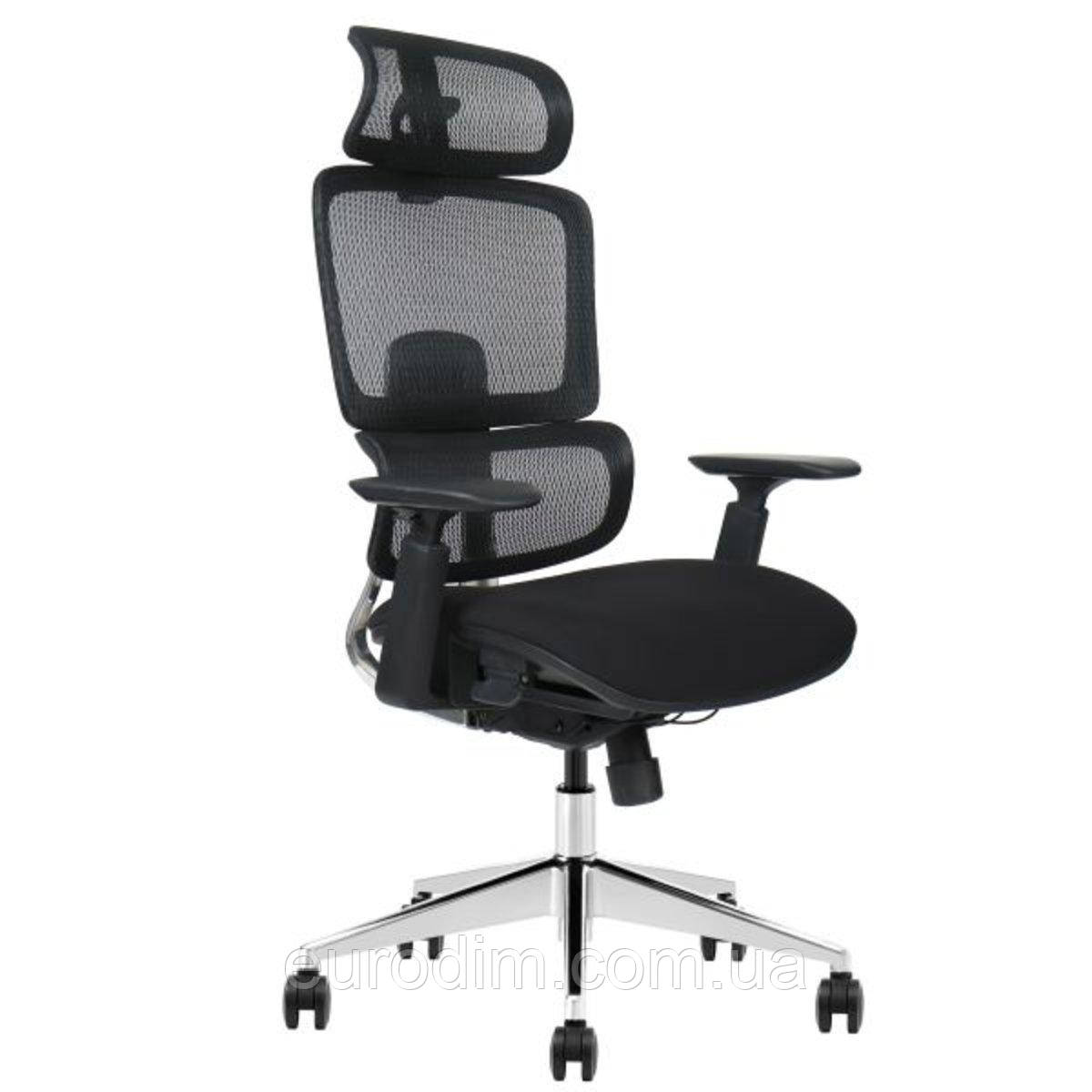 Додаткова інформація: ергономічне офісне крісло з високою спинкою, регульований підголівник, роздільний дизайн спинки з подвійною підтримкою поперекового відділу, пружинна поперекова підтримка, регулювання висоти спинки (блокування 5 передач), алюмінієвий кронштейн для спинки. Механізм TILTсинхронізованого нахилу (блокування в 4-х положеннях). Сидіння з тканинною оббивкою та підлокотниками Slider 3D, сидіння регулюється по висоті, регулюється натяг спинки, газліфт 4 класу, алюмінієва основа, поліуретанове колесо.